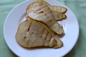 - Hruška vyberá tvrdé odrody. Umyte si hrušku a nakrájajte ju na tenkú plátky, potom posypte limetkovou šťavou.