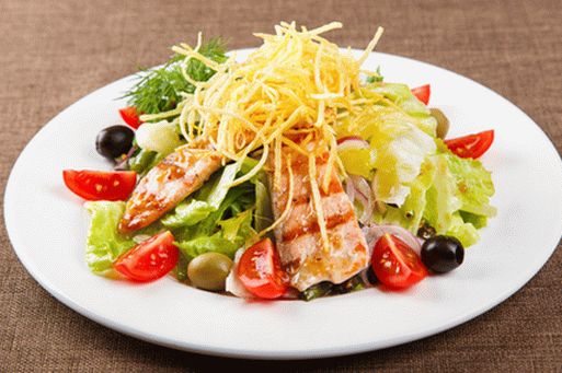 Šalát Nicoise – skvelý výtvor francúzskych kuchárov. Pôvodný recept obsahuje tuniaka. Ale urobíme s lososom. Potom bude mať toto jedlo bohatú chuť a ak ho budete variť na grile – efekt je úžasný.