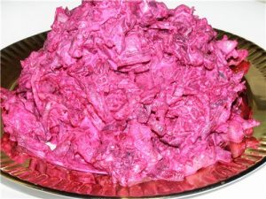 Mletie koreňovej plodiny, pridanie cesnaku a majonézy.