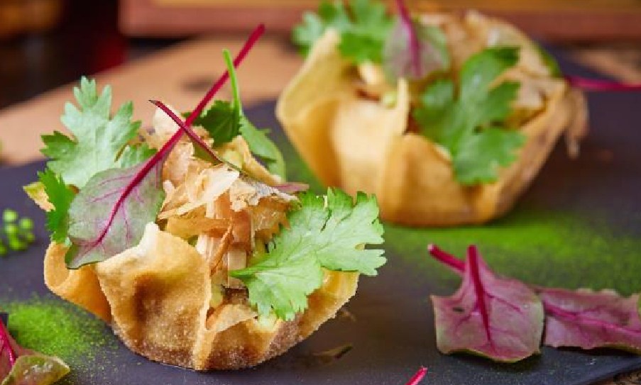- Vložte šalát do košov, posypte tuniakovými hranolkami a slúžiť.