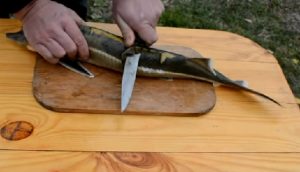 Pripravte ryby. Za týmto účelom sa sterlet musí umyť, odstrániť hlavu a nakrájame ryby na filé. Potrebujeme hlavu bohatý vývar, takže je potrebné ho spracovať, odstrániť oči a žiabre. Hrebeň a plutvy by sa nemali vyhadzovať, všetko pôjde vývar.
