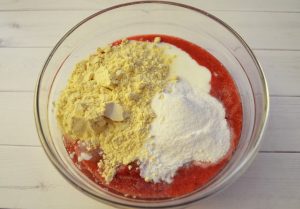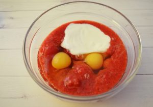 - Kombinujeme vajcia, kefír a jahodové pyré.