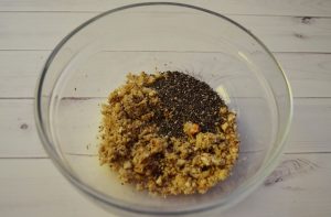 - Orechy mleté pomocou mixéra, ale nie veľmi jemne. Pridajte semená chia.