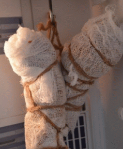 - Mäso dôkladne pretrite zmesou. Zabalte ho do niekoľkých vrstvy gázy, ale nie príliš tesné, mäso by malo dýchať.