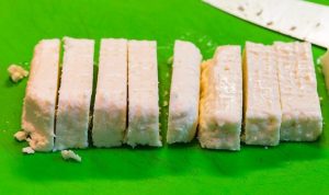 - Plátky nori nakrájajte na polovicu a ponorte do omáčky na 3-4 sekundy. Plátky syra zabalte do nori a opečte na ružové hnedé. Bon chuť!