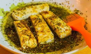 - Olej zmiešajte so sójovou omáčkou, rozdrveným cesnakom a bylinky.