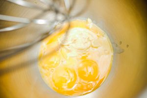 - Nalejte olej do žĺtkovej zmesi v tenkom prúde intenzívne miešanie. Mala by to byť hustá omáčka. Solim a korenie podľa chuti.