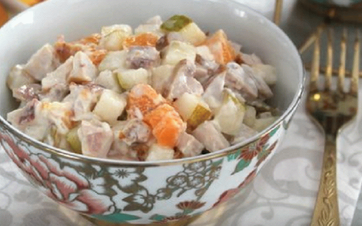 Dobré jedlo pre vianočný a novoročný stôl, ktoré bude zjavením pre tých, ktorí ešte nevyrábali šaláty s králičím mäsom. Je to nielen chutné, ale aj veľmi užitočné, pretože králičie mäso Obsahuje veľa dôležitých látok a mikroelementov v tele.