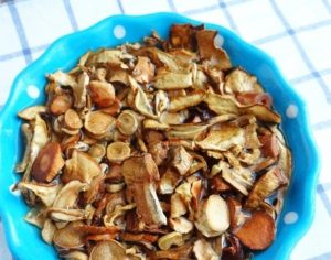 - Vložte huby do misy. Nalejte gázu do vody, v ktorej sú položiť, pridať zemiaky, bobkové listy, soľ, korenie.