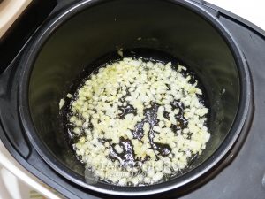- Maslo rozpustíme v miske a opečieme cibuľu.
