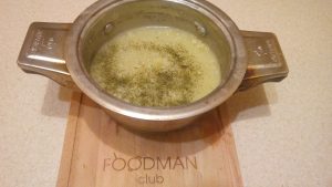 - Nalejte vodu a akonáhle vrie, odstráňte penu, znížte teplo. Pridajte soľ, korenie a bobkový list. Varíme ďalších 10 minút.