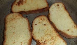 - Plátky dlhého cesta opečte na panvici s maslom.
