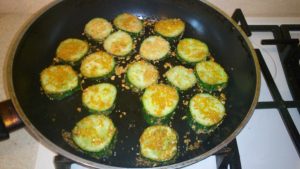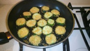- Nakladané uhorky nakrájajte a smažte na oboch stranách slnečnicový olej asi 2 minúty na každej strane.