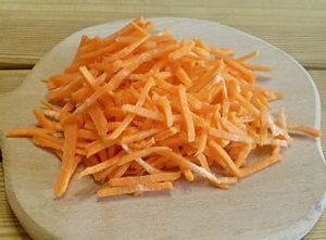 - Mrkvu nakrájajte na prúžky.