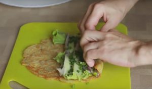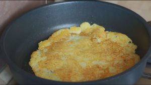 - Na rovnomernej tenkej vrstve naneste zemiakovú hmotu olejová panvica.