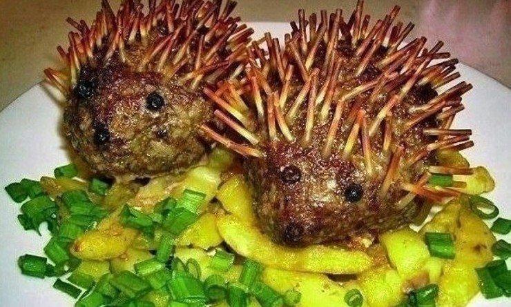 - Vložte špagety alebo vermicelli ihly do zadnej časti ježkov.