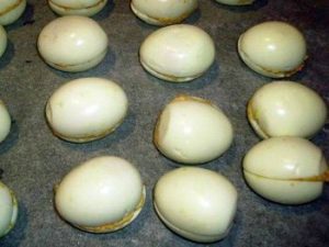 - Varte vajcia uvarené na tvrdo. Rozstrihnite ich na polovicu a vyberte žĺtky. Varte mrkvu.